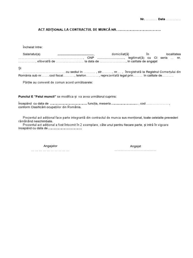 Angajare Act Aditional Modificare Loc De Munca Pdf Document