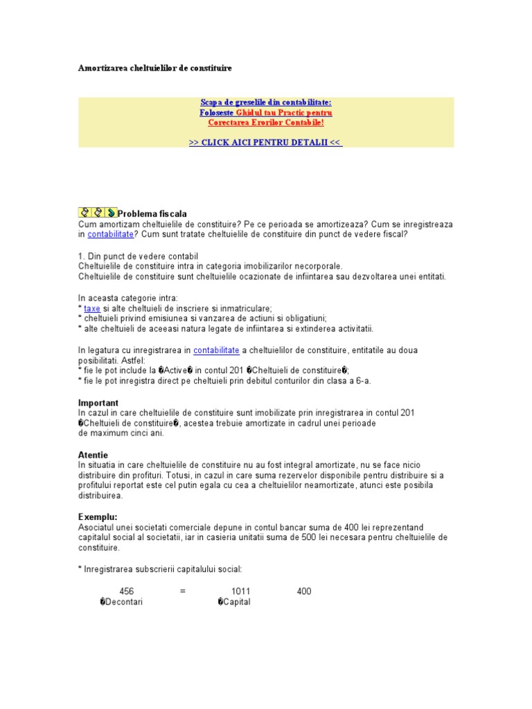 Amortizarea Cheltuielilor De Constituire Contabilitate