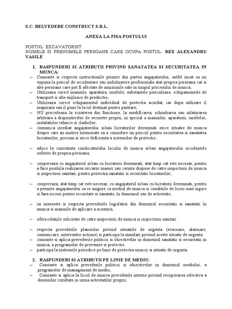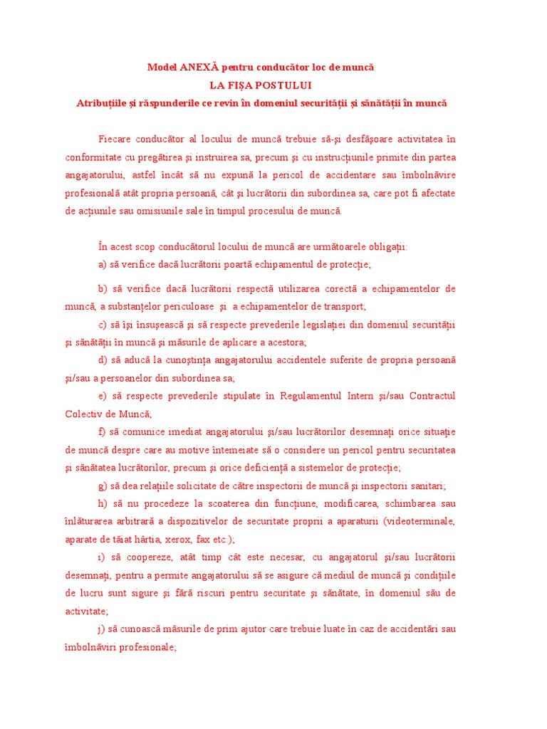2 2 Anexa La Fisa Postului Sef Loc De Munca Model Doc