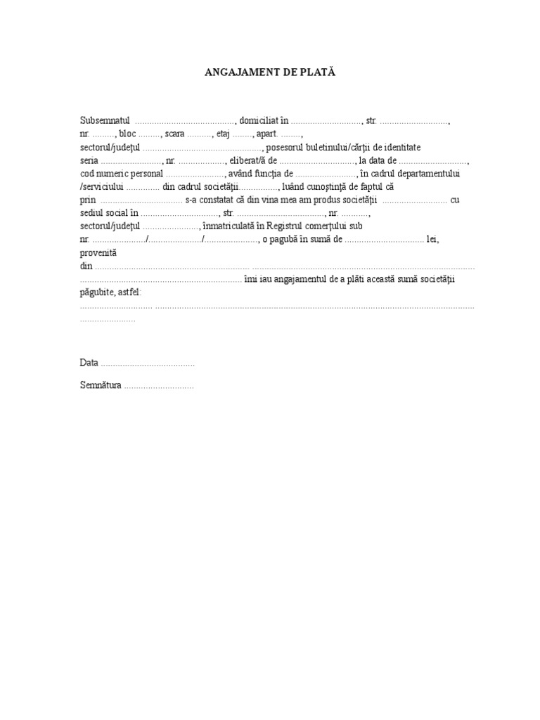Angajament De Plata Formular Word Formulare Tipizate Gratuite