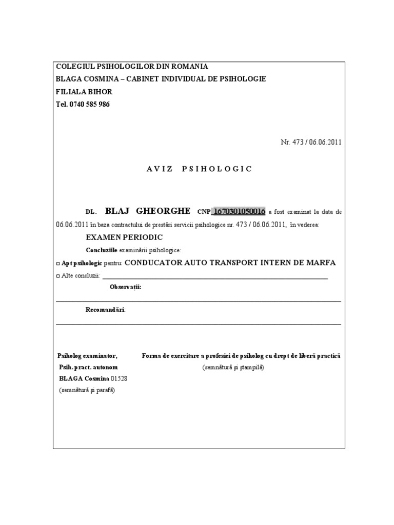 Aviz Psihologic Pentru Obtinere Permis Conducere Auto Anunturi Medicale Timis