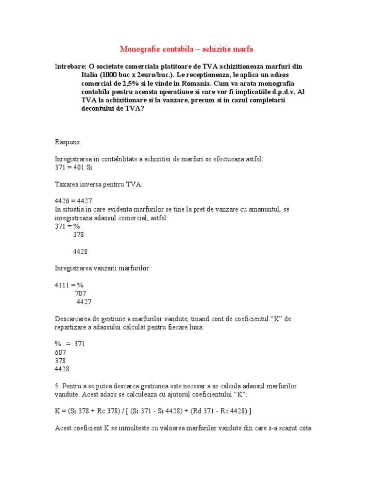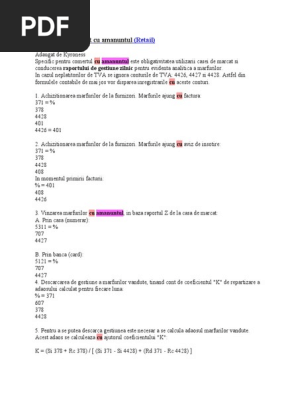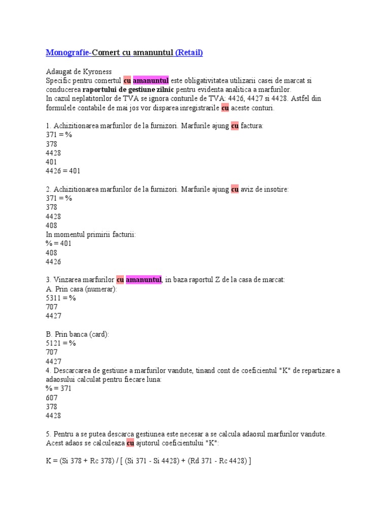 Coeficientul K In Comertul Cu Amanuntul Monografie Contabilitate Fiscalitate Monografii Contabile