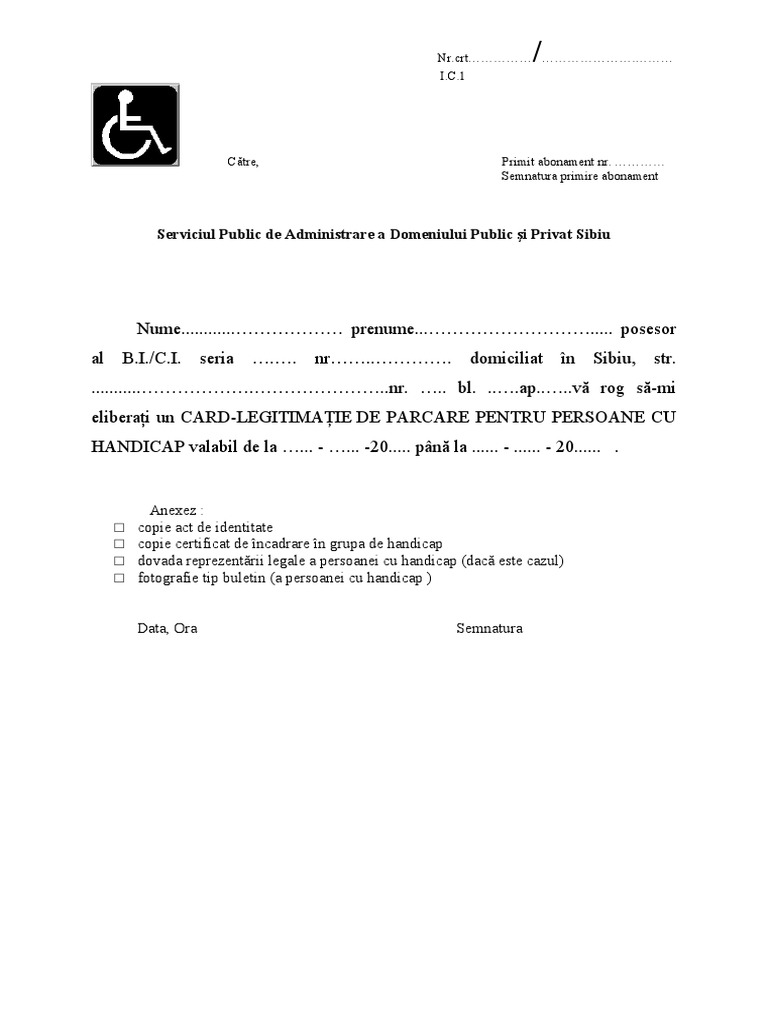 Card Parcare Persoane Cu Handicap Serviciul Public Ambient Urban