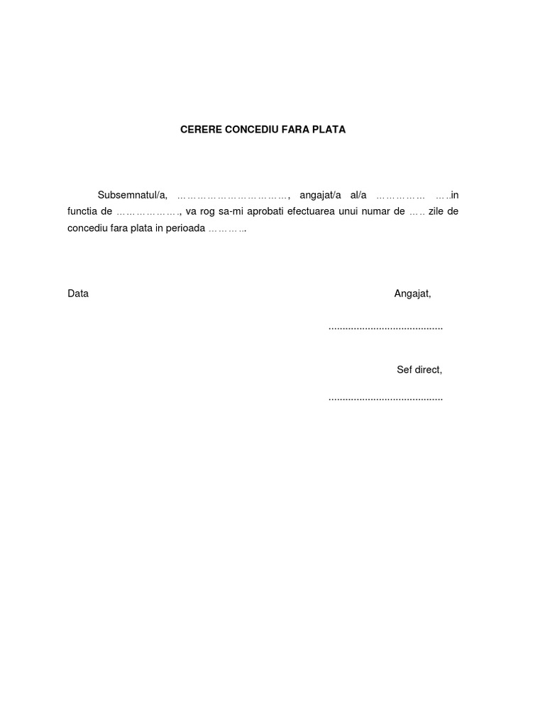 Model Cerere Concediu Fara Plata