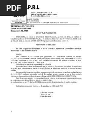 Cerere De Repunere In Termen Procedura Insolventei