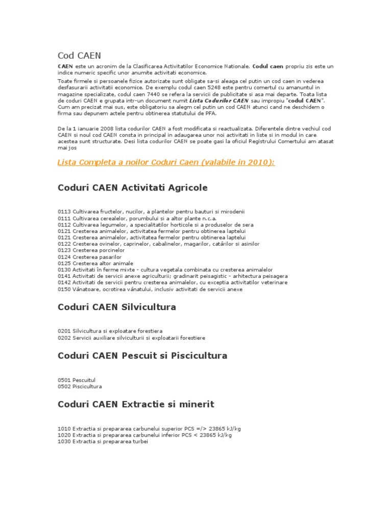 Coduri Caen Pentru Comert Cu Produse Medicale Servicii Avocat