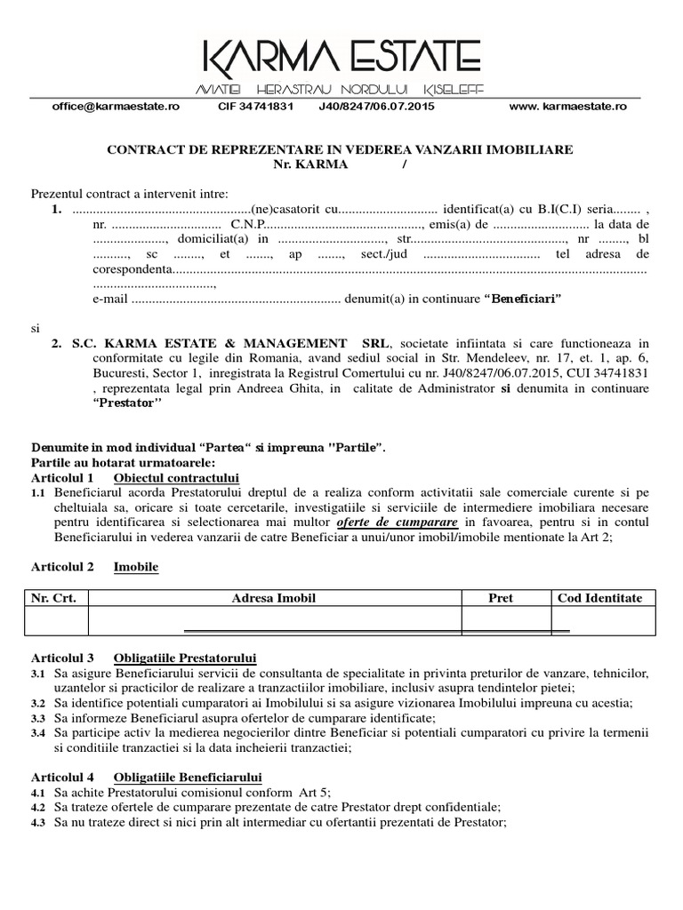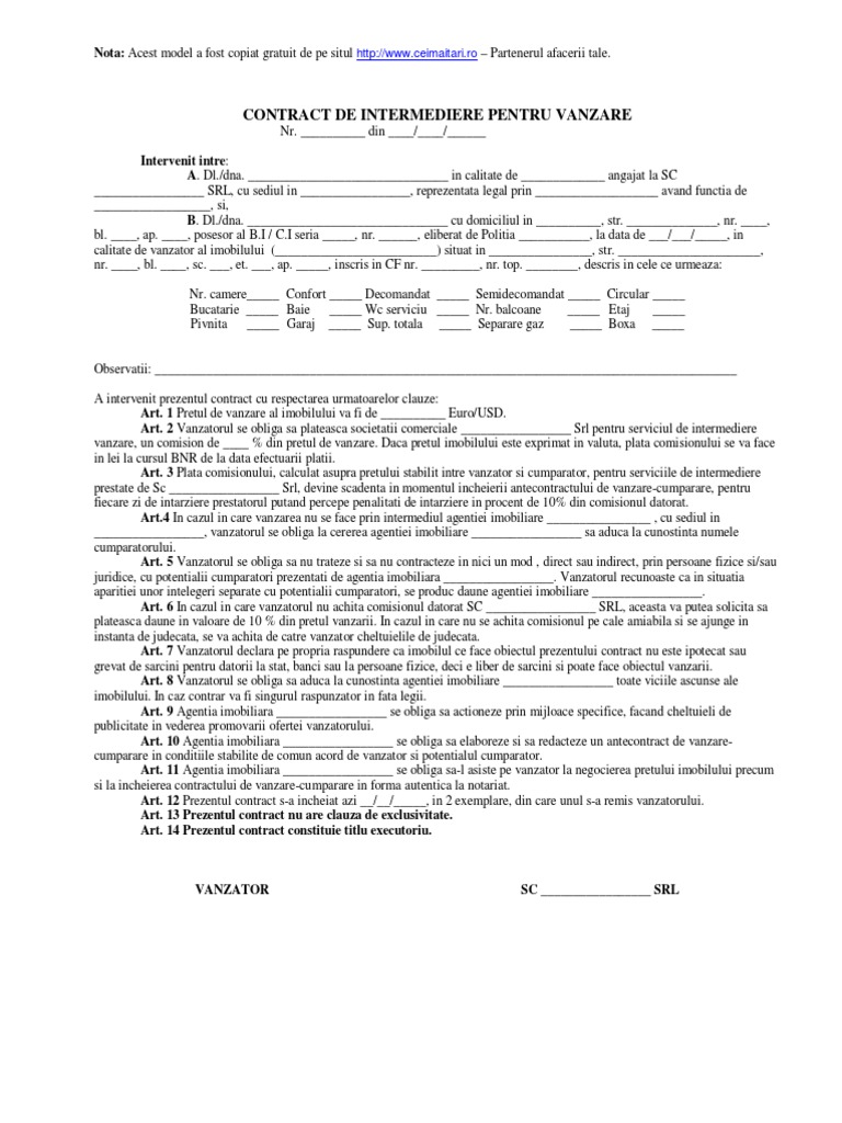 Contract De Intermediere Imobiliara Agentie Imobiliara Pcon094