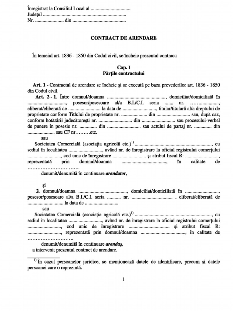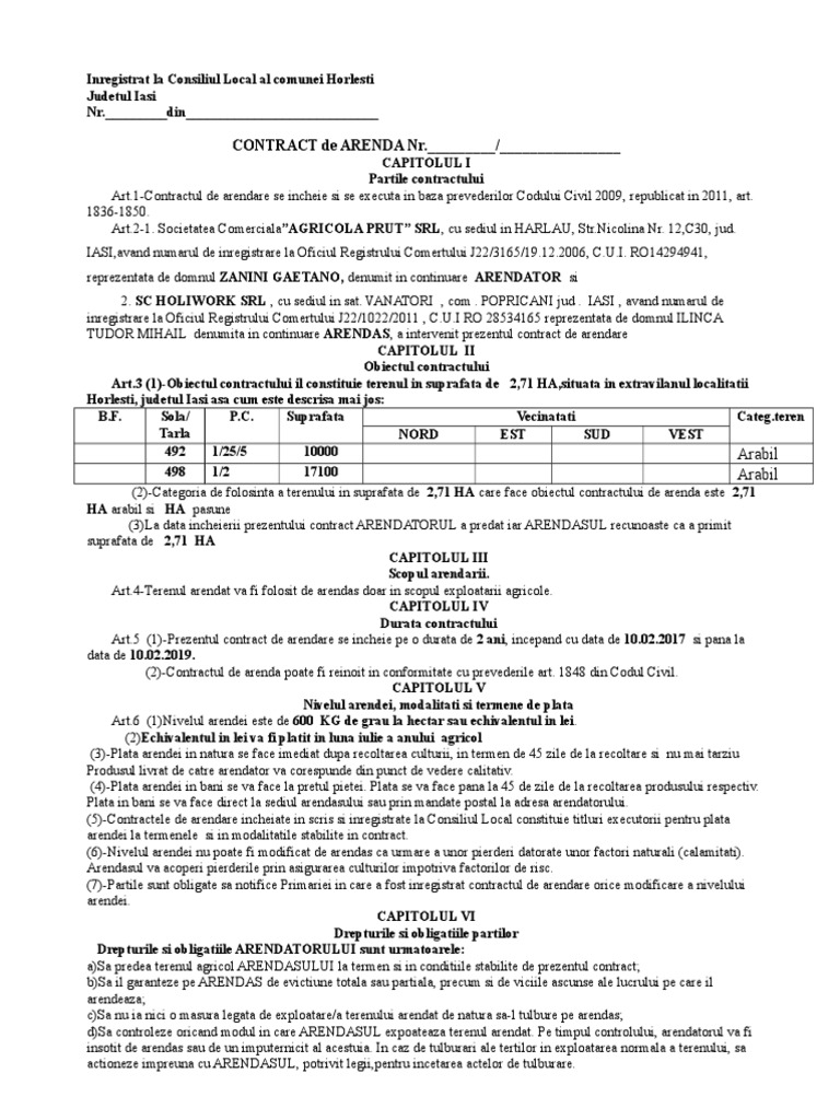Model Contract Arenda Teren Agricol 2017