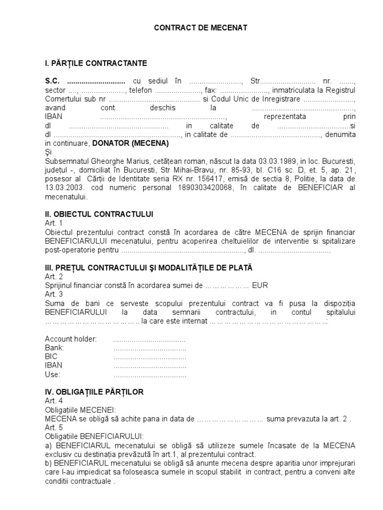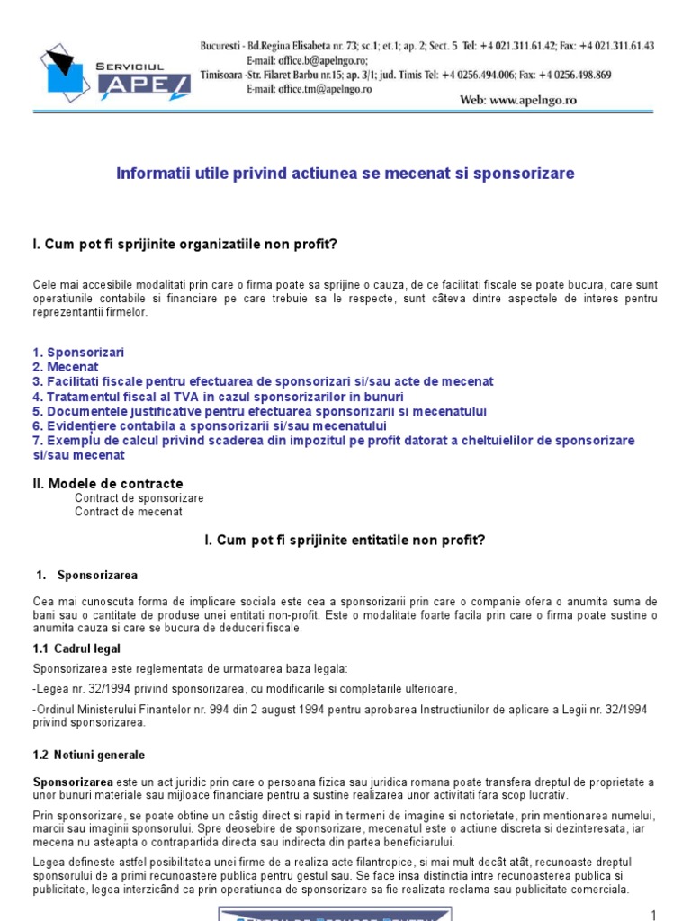 Contractul De Sponsorizare Sau De Mecenat Setthings