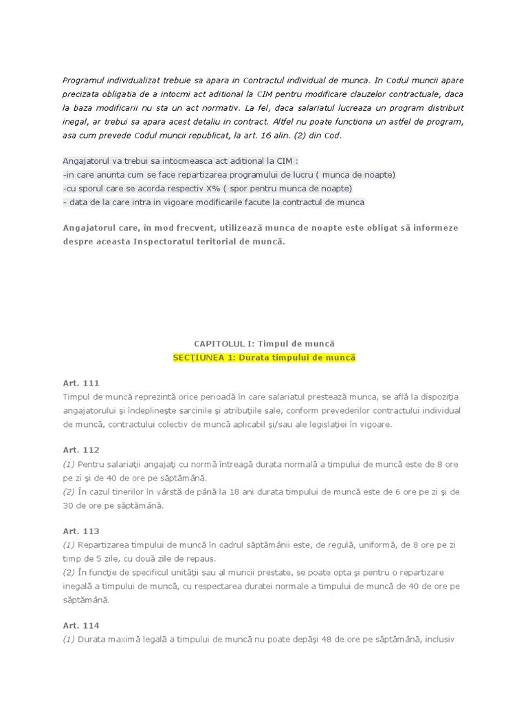 In ceea ce priveste salariatii angajati cu norma intreaga durata normala a timpului de munca este de 8 ore pe zi si de 40 de ore pe saptamana. La locul de munca unde aveti program de 8 ore sau la cel cu cim partial de 4 ore. Cat despre timpul de lucru prevederile din codul muncii referitoare la durata timpului de munca au in vedere timpul de lucru in temeiul unui singur contract individual de munca. Desi in cazul tuturor acestor contracte salariatii se bucura de aceleasi drepturi sunt anumite nuantarii in cazul contractului de munca in timp partial pe cind in cazul celorlalte contracte daca programul de 6 ore este determinat de o norma de protectie nu are nici o importantanta asupra tichetelor de masa sau a concediului.