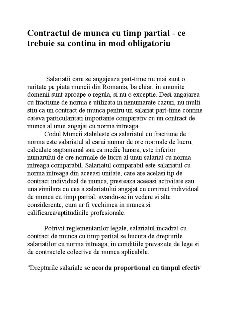 Contract De Munca Cu Timp Partial