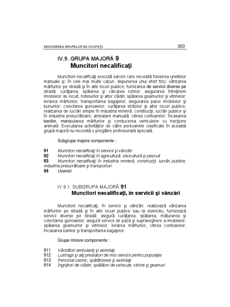 9 Muncitori Necalificaţi Iv 9 Grupa Majoră