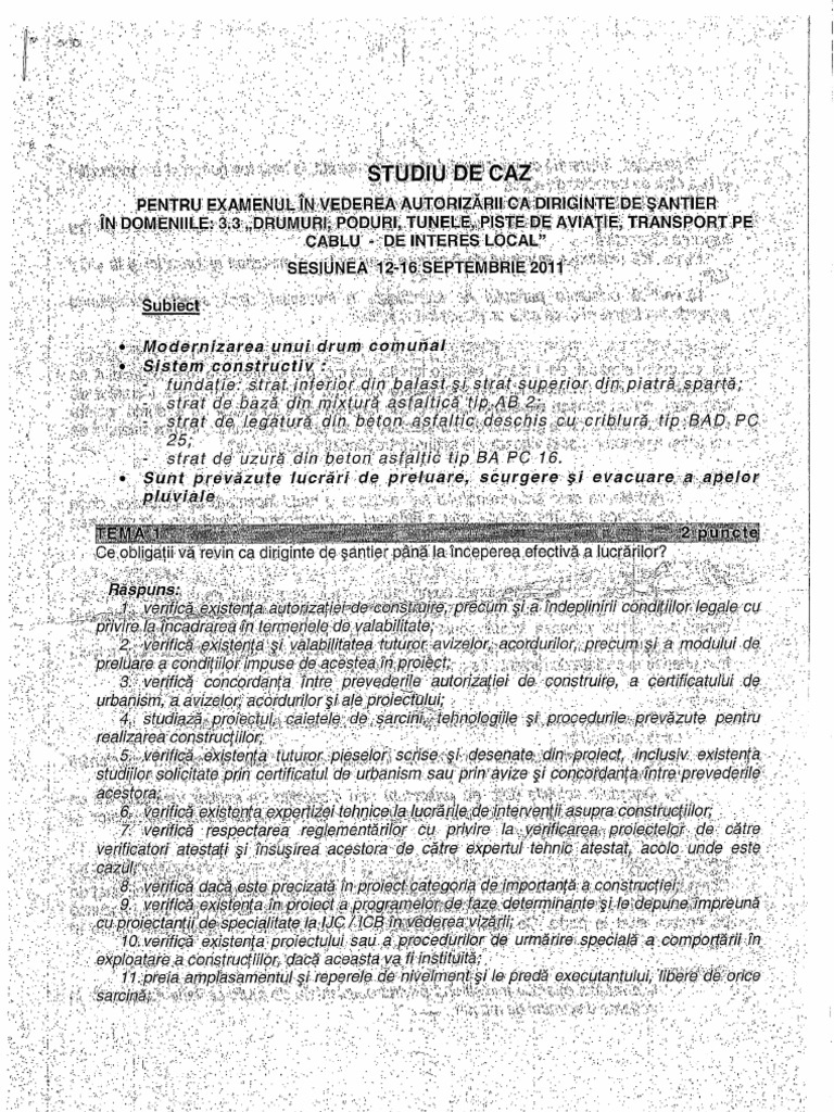 Exemple studiu de caz examen diriginte de șantier. Cere un ordin de ministru pentru recunoașterea autorizațiilor a n r e. Teste diriginte de santier. Aparatul central date contact.
