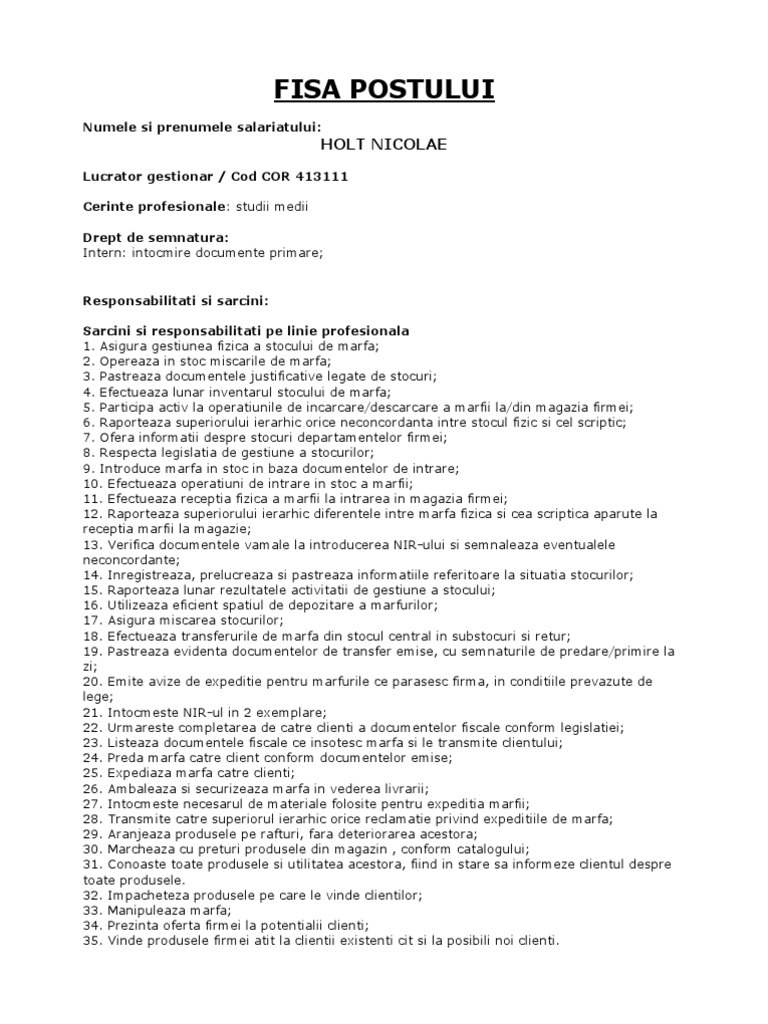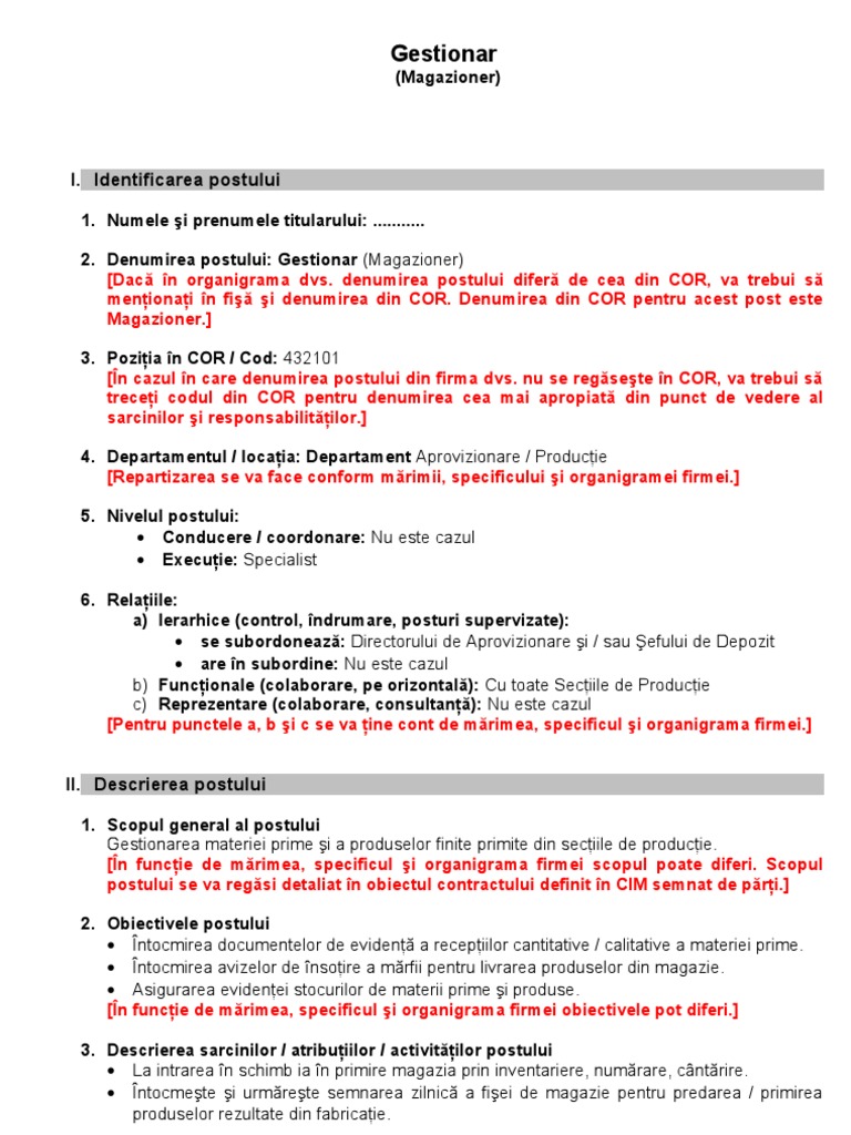 Fisa Post Gestionar Depozit Relevant Si Pentru Magazioner Protectia Muncii