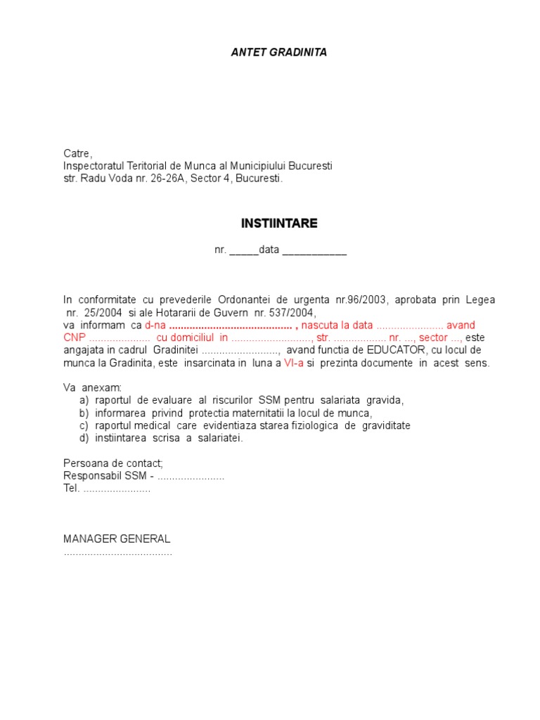 Protectia Maternitatii La Locul De Munca Informare Salariata Gravida Itm Pdf Document