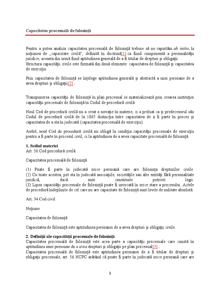 Capacitatea Procesuală De Folosinţă