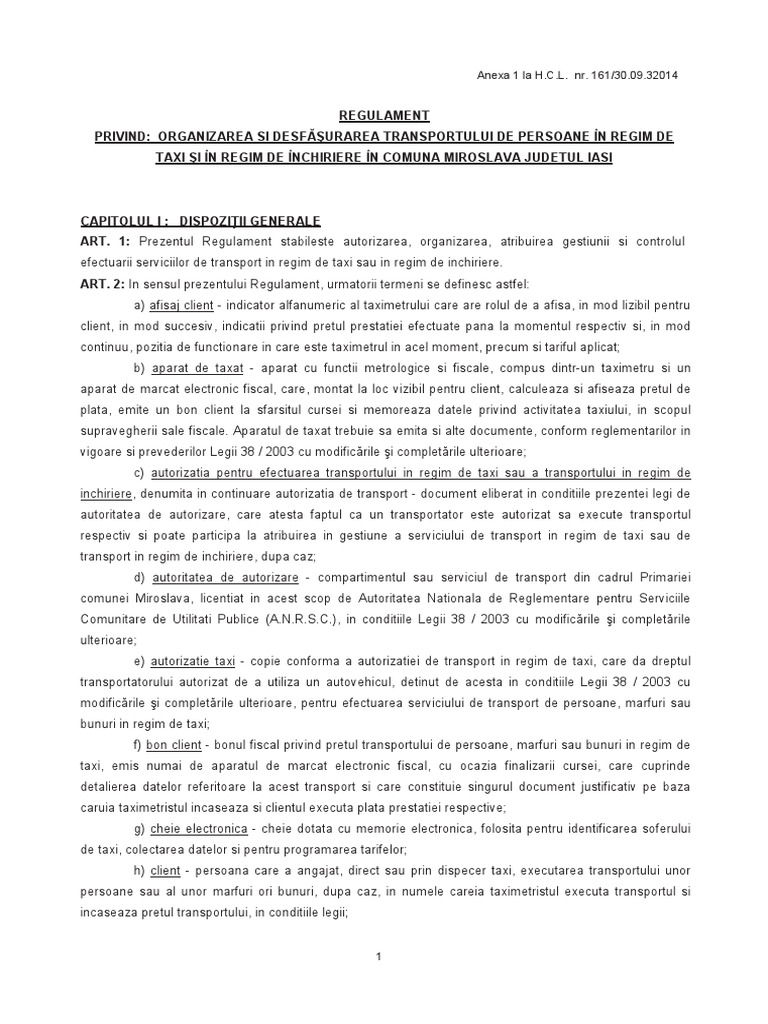 Regulament Transport Taxi Si Regim Inchiriere