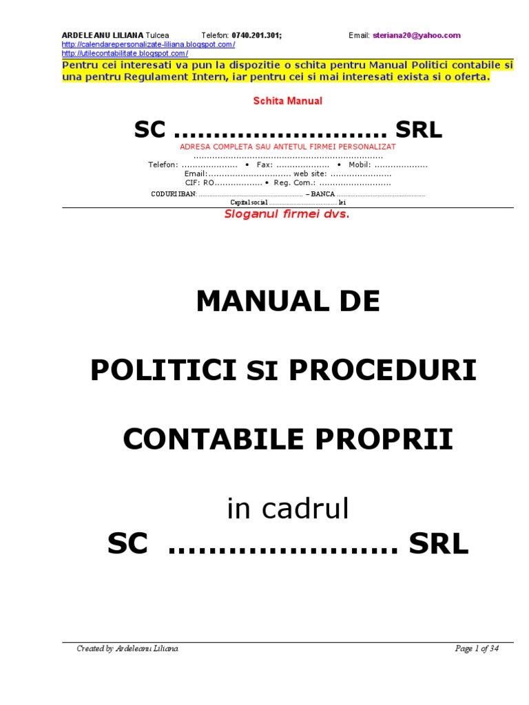 Manual Politici Si Proceduri Contabile Sc Srl Schita