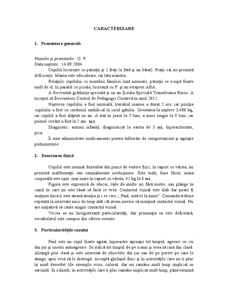Doc Caracterizare Psihopedagogică Model Gabriela D Costescu Academia Edu