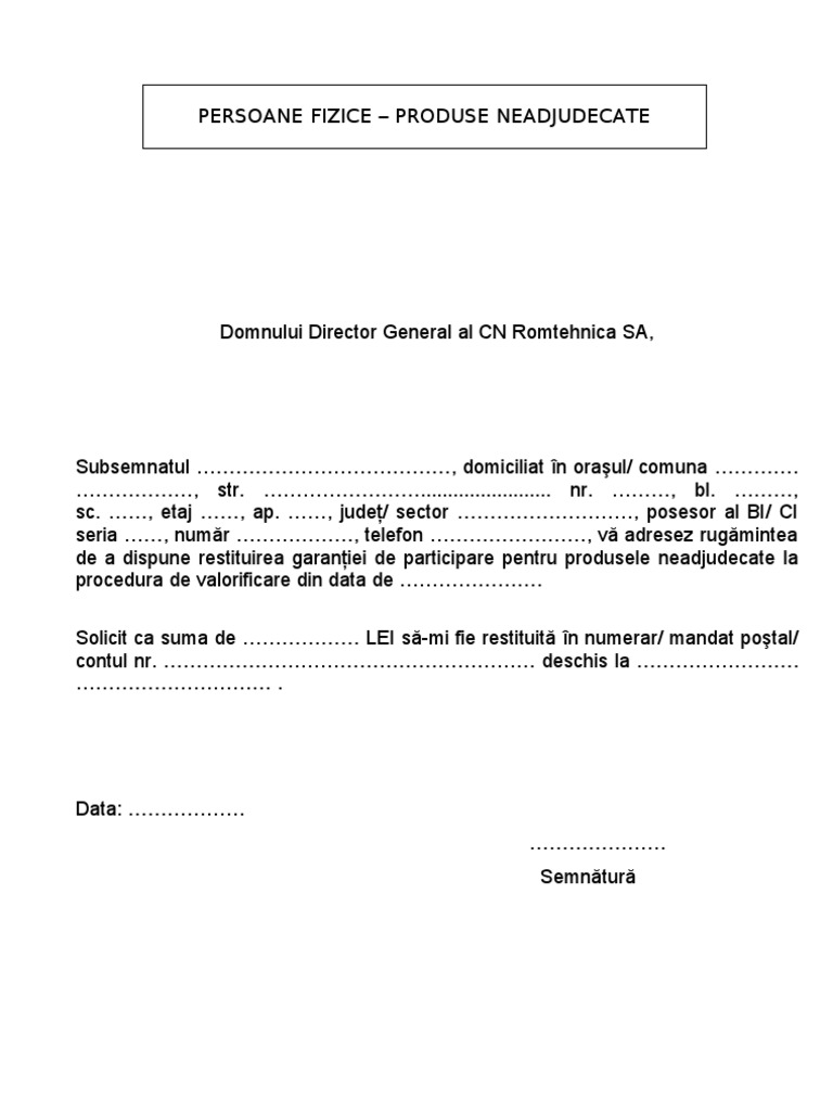 Model Cerere Returnare Garantie Pf Si Pj