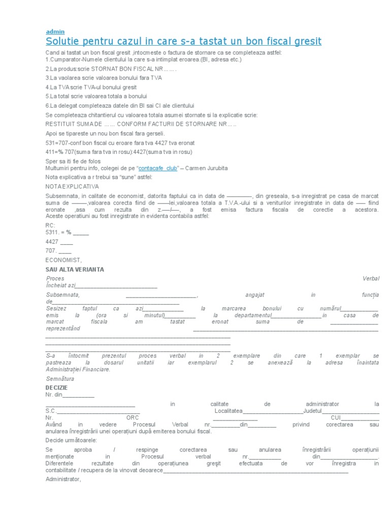 Model Declarație și Decizie Anulare Bon Fiscal Eronat Editabil și Gratuit Cabinetexpert Ro Blog Contabilitate