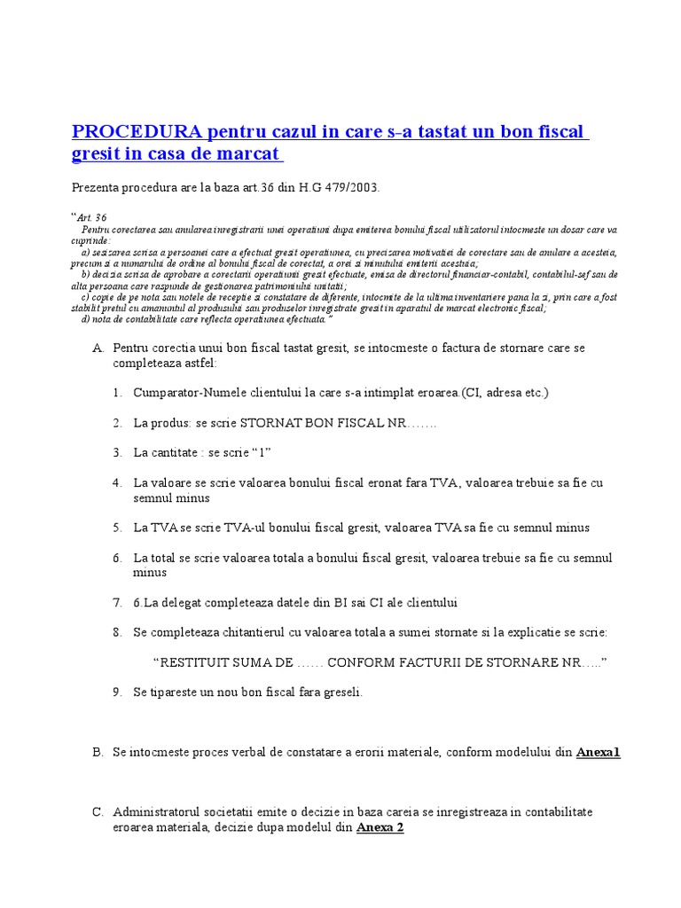 Procedura Bon Fiscal Eronat