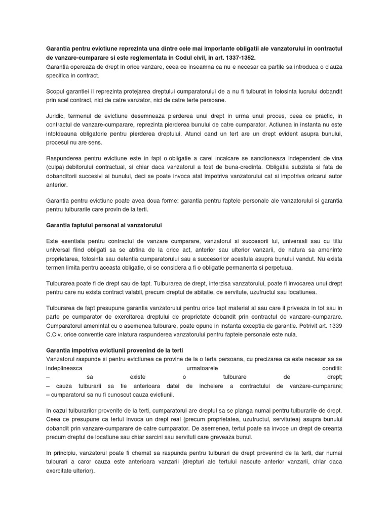 Garantia Pentru Evictiune Reprezinta Una Dintre Cele Mai Importante Obligatii Ale