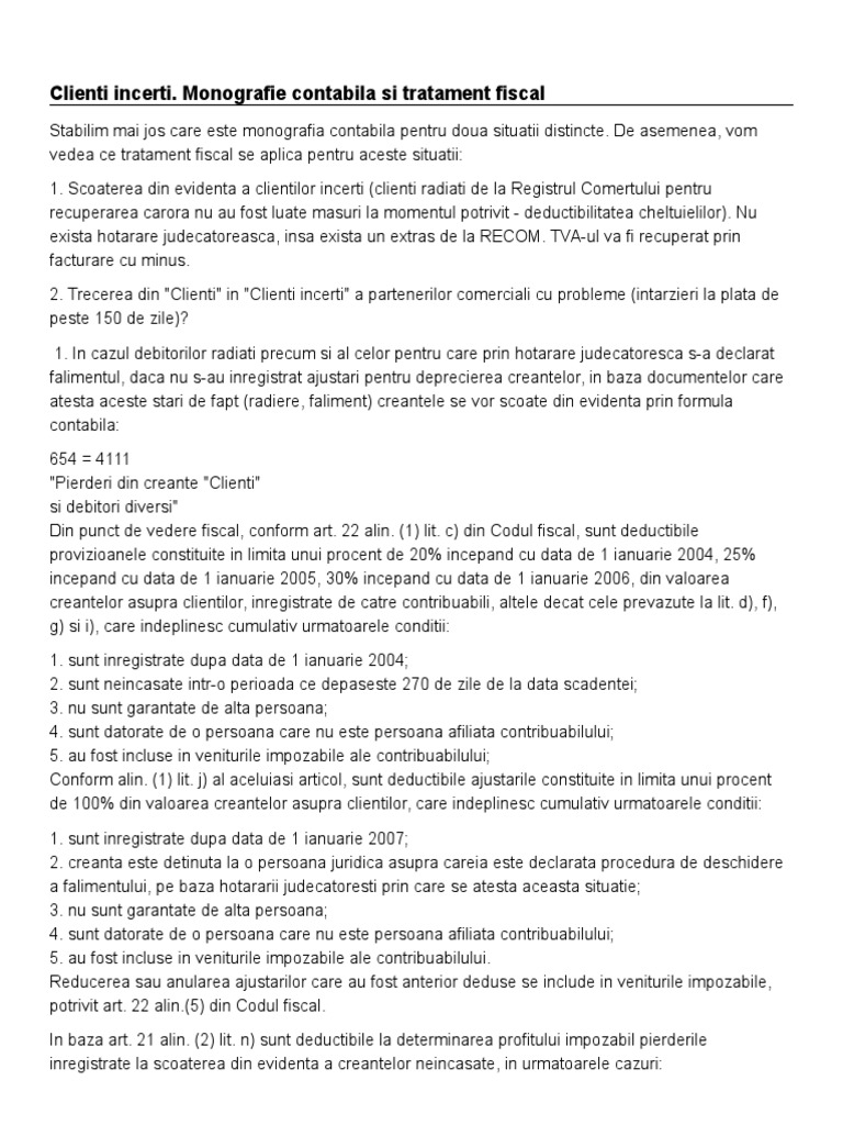 Procedura Contabila Scoatere Din Evidenta Clienti Art 237