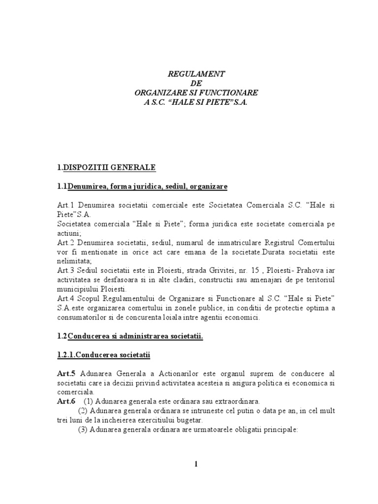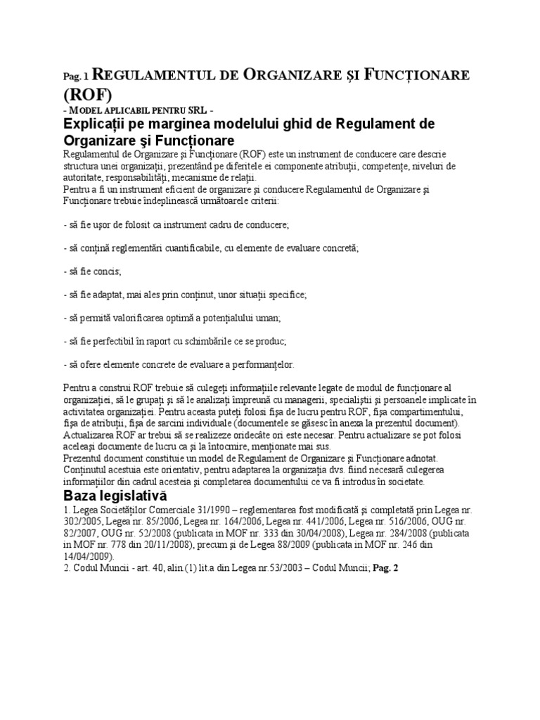 Pdf Regulamentul De Organizare Si Funcţionare Rof Model Aplicabil Pentru Srl Baza Legislativă Gabriel Colin Academia Edu