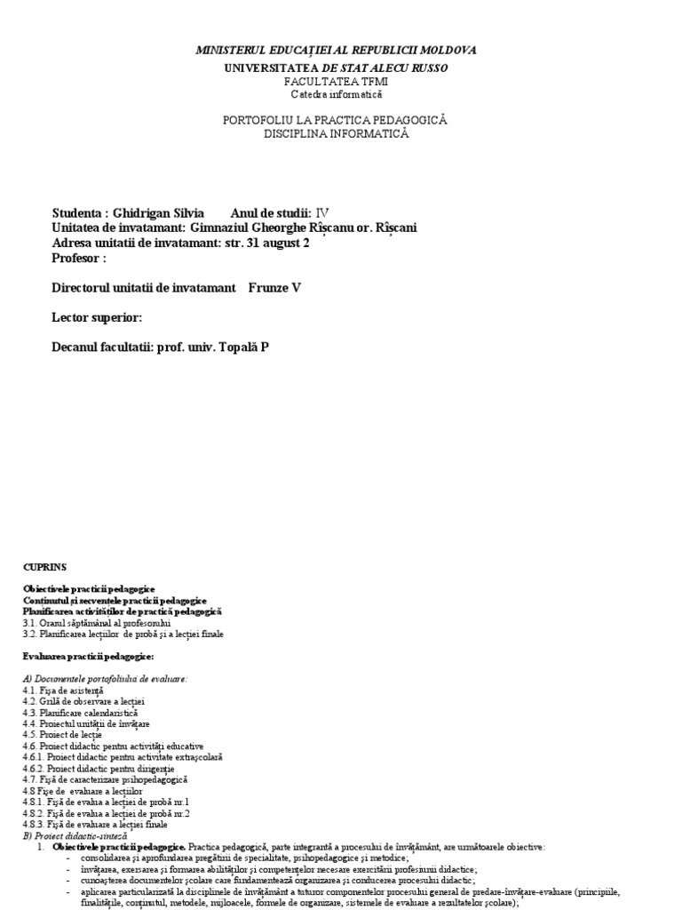 Doc Caiet Practica Modul Psihopedagogic Bianca Danci Academia Edu