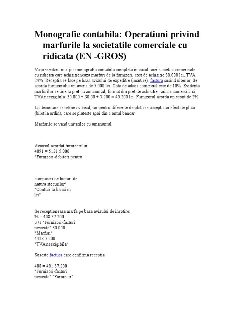 Monografie Contabila Marfuri Contabilitate Fiscalitate Monografii Contabile