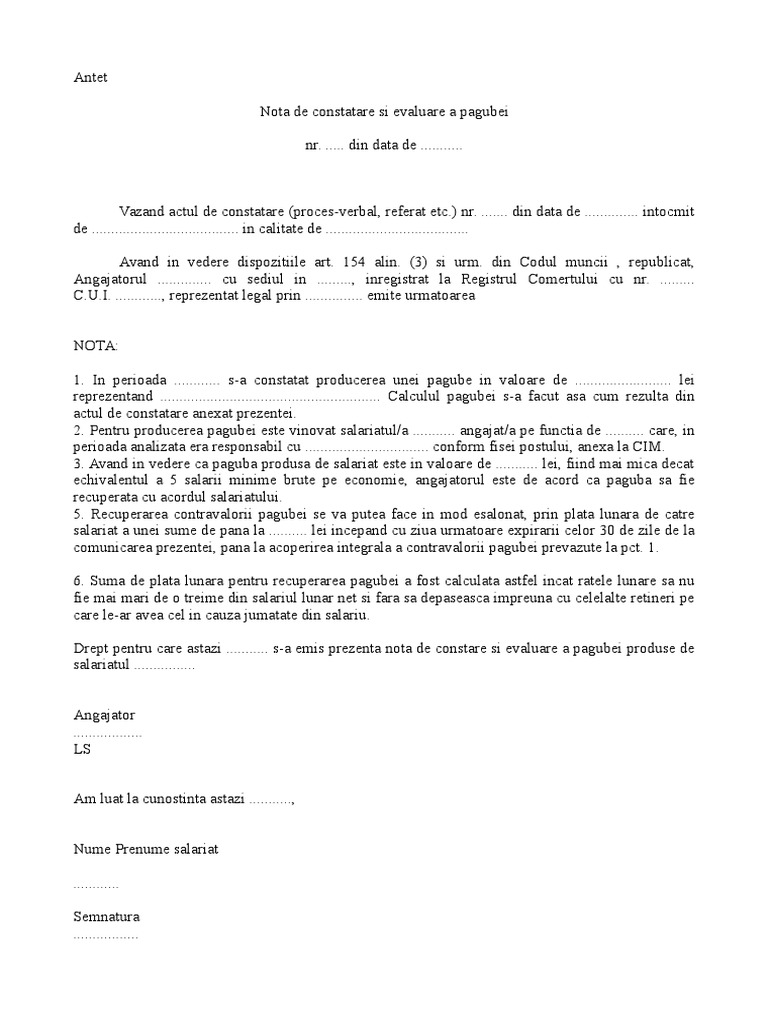 Nota De Constatare Si Evaluare A Pagubei Model Completat