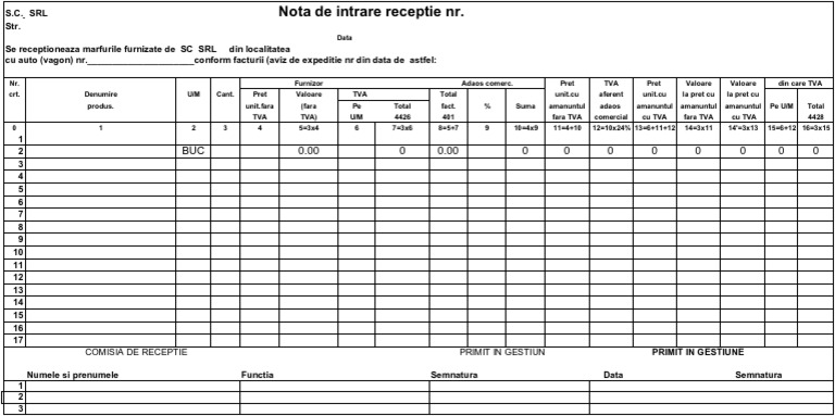 Nota De Intrare Receptie Nr 16 Coloane