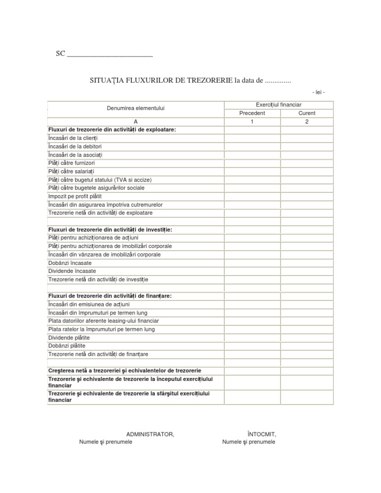 Situatia Fluxurilor De Trezorerie
