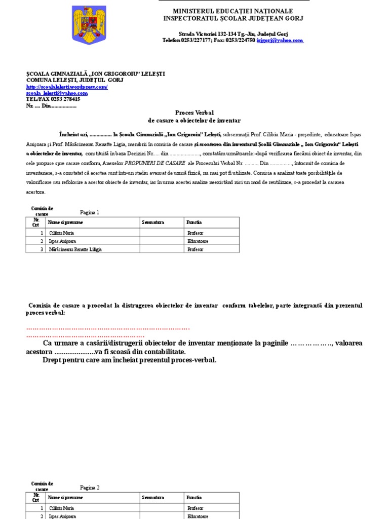Proces Verbal De Casare Obiecte De Inventar 2018