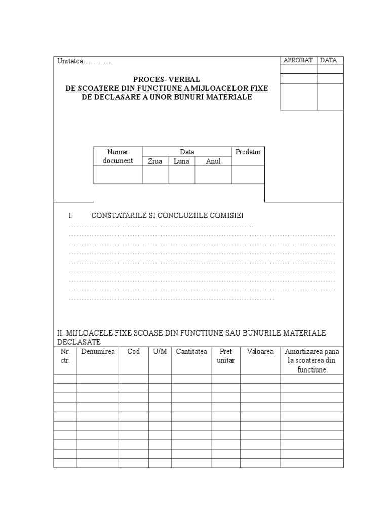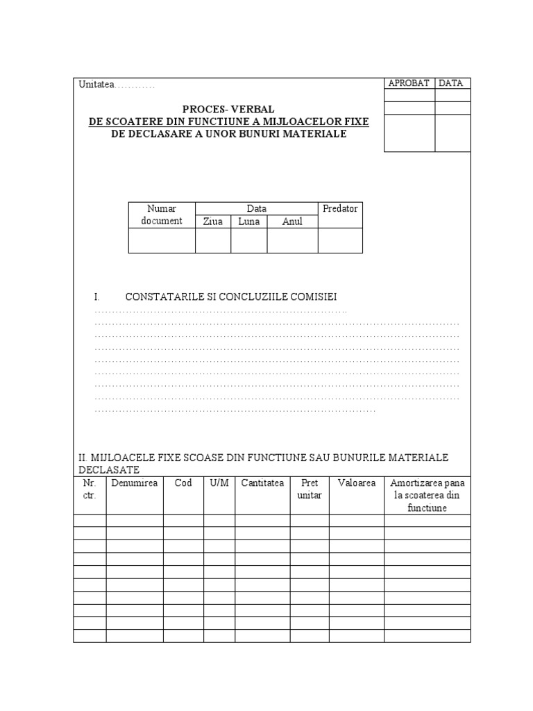 Proces Verbal De Scoatere Din Funcţiune A Mijloacelor Fixe De Declasare A Unor Bunuri Materiale Contabilitate Fiscalitate Monografii Contabile