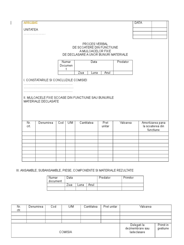 Pv De Scoatere Din Functiune A Mijloacelor Fixe Model Si Explicatii Contabun Ro