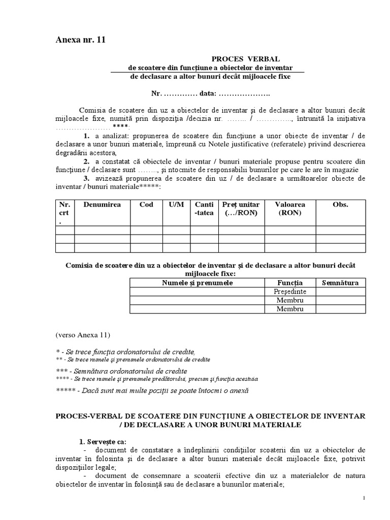 Model Proces Verbal De Scoatere Din Funcţiune A Mijloacelor Fixe De Declasare A Unor Bunuri Materiale