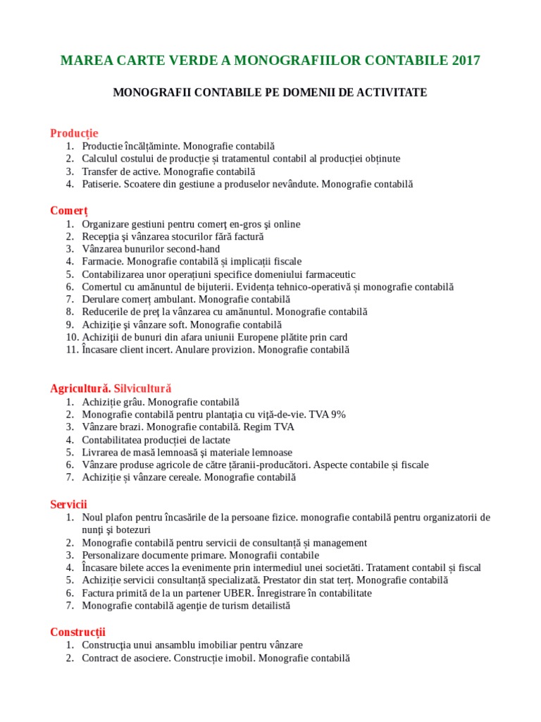 Marea Carte Verde A Monografiilor Contabile 2017 Emag Ro