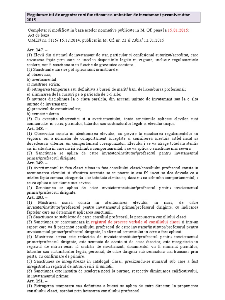 Regulament de organizare si functionare a unitatilor de invatamant preuniversitar 2015. Regulamentul de organizare si functionare a unitatilor de invatamant preuniversitar 2015 completat si modificat in baza actelor normative publicate in m. Direcţia generală învăţământ preuniversitar direcţia generală management şi. Profesorii care au lectii in ultima ora de cus se ingrijesc de ridicarea scaunelor de curatarea bancilor de catre fiecare elev precum si de inchiderea geamurilor a usilor de eliminarea. Dispozitii generale capitolul 1.