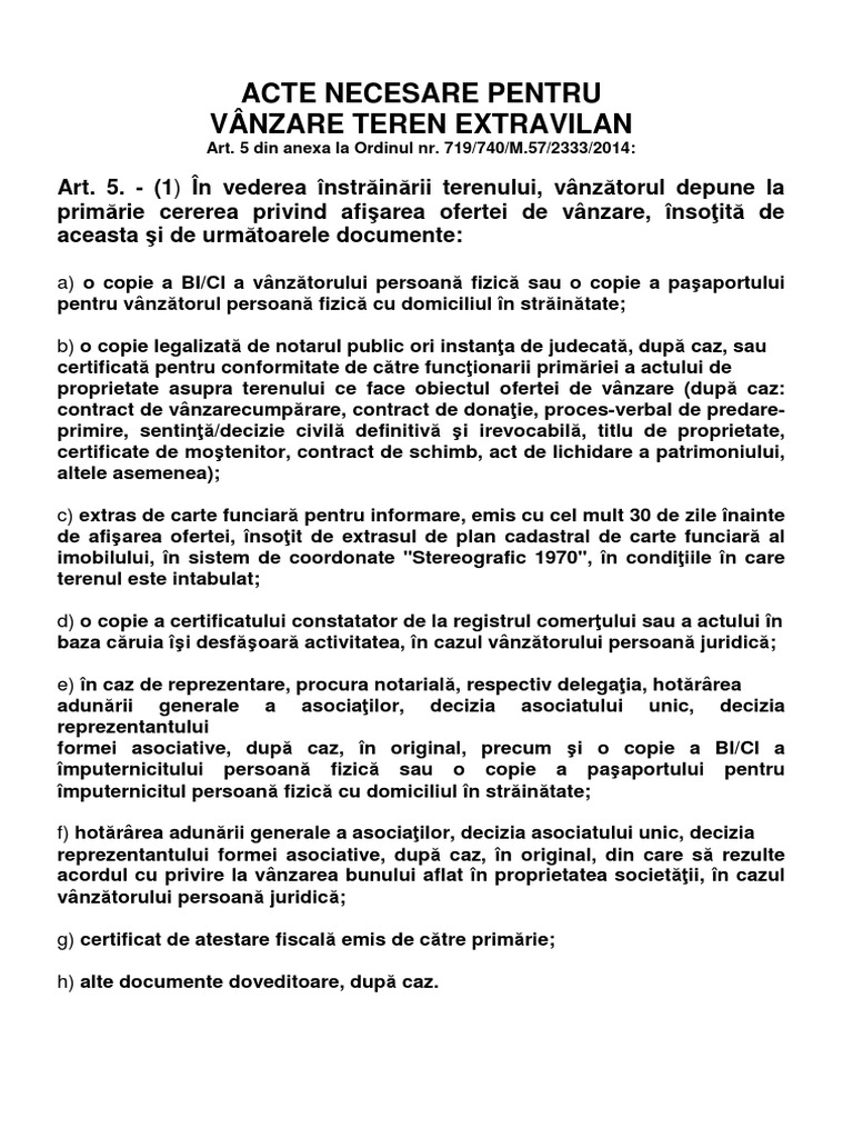 Vanzare Teren Extravilan Acte Necesare